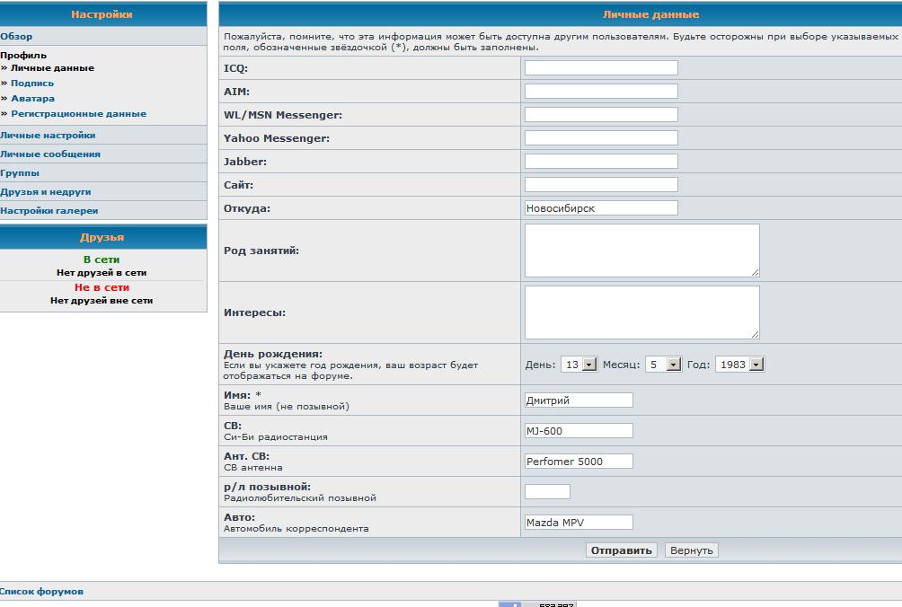 ага, там естьМуравей писал(а):Не там смотрите. Надо под любым своим сообщением нажать на кнопку "профиль" или найти себя в списке пользователей и нажать на свой ник там.