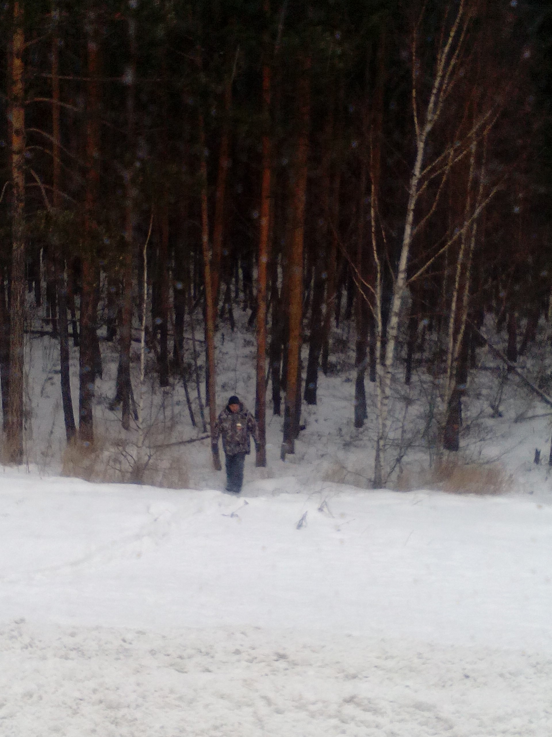 - - люди с оружием, или в маскхалатах, или в охотничьей одежде, «гуляющие» по лесу или у дороги;