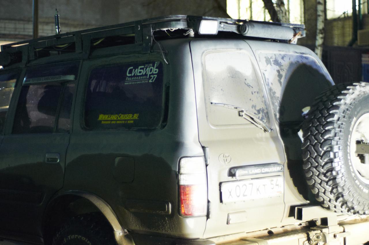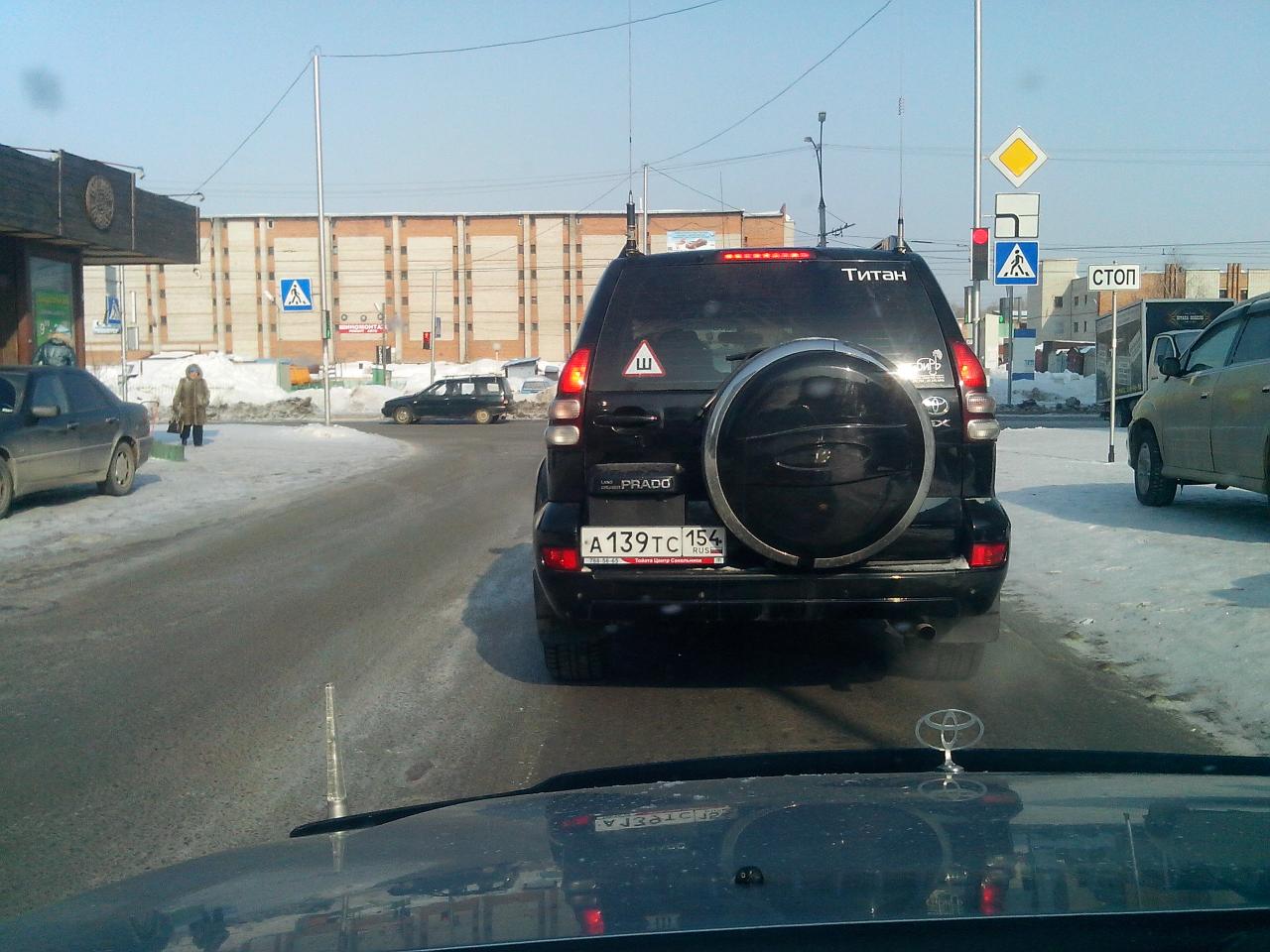 Комсомольский проспект. Плохо видно. Прадо с наклейками и флажком. 03.04.14
