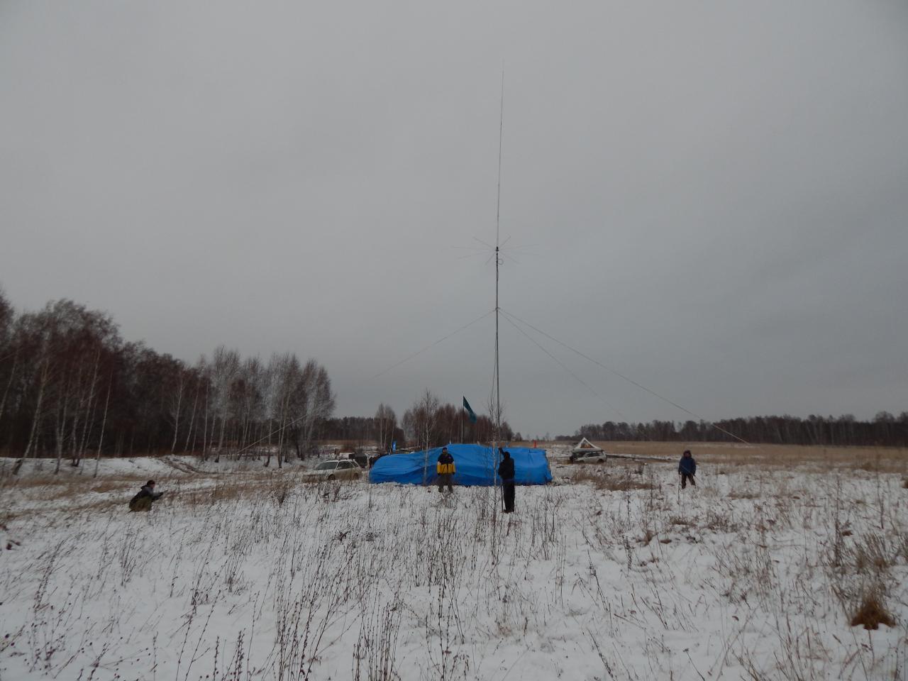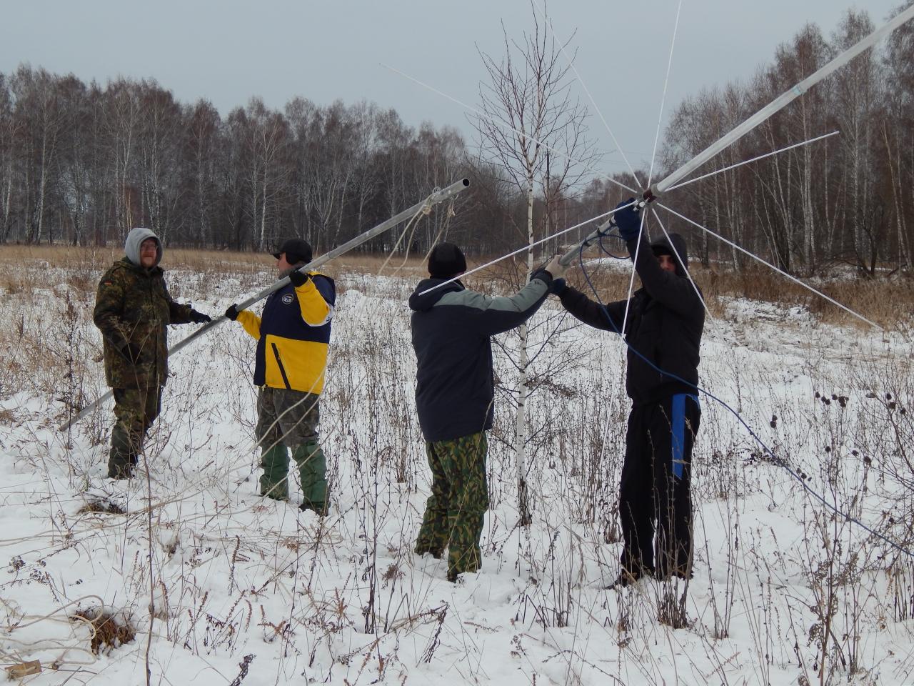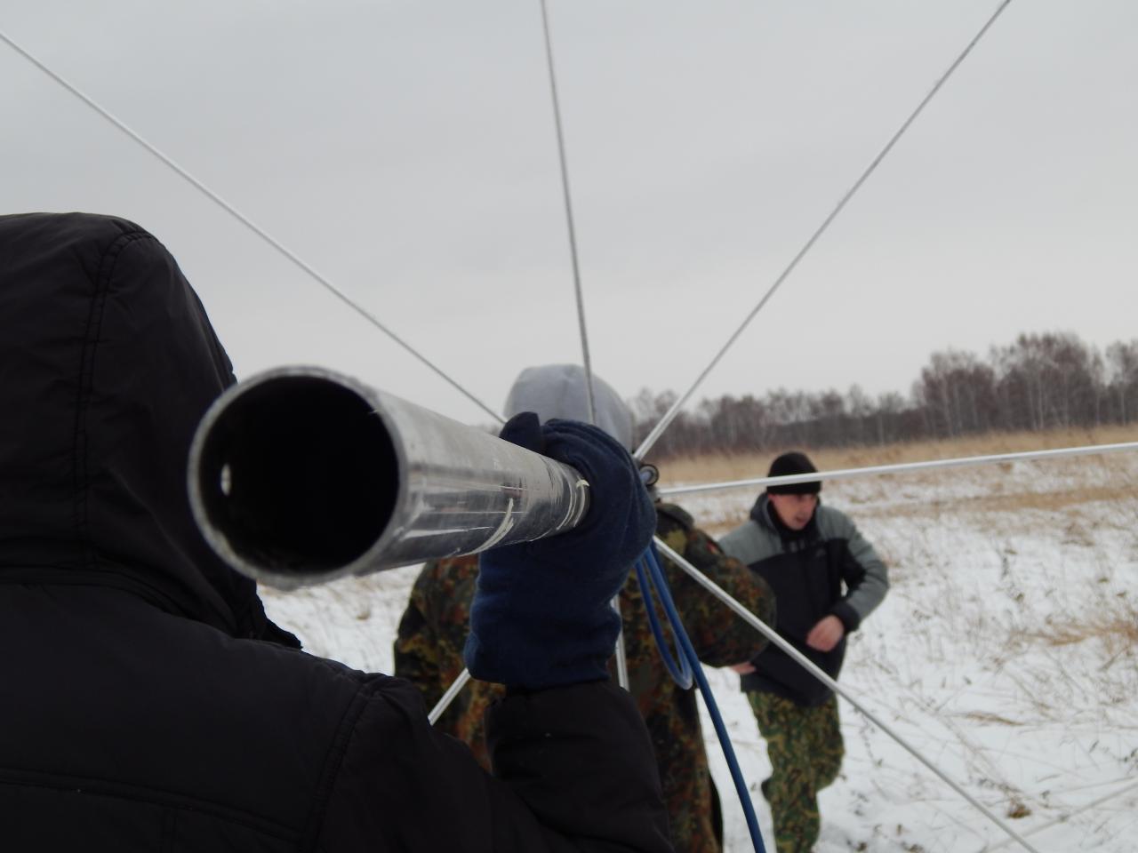 Начинаем поднимать всю эту конструкцию. Напомню, сама антенна 6,5 метров. Мачта 7,5 метров