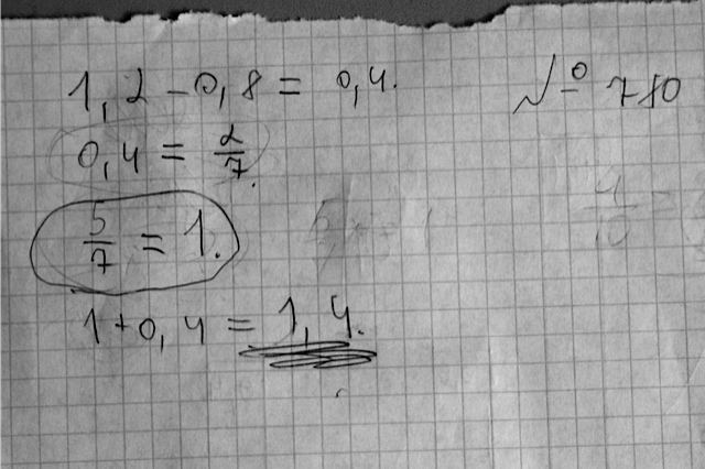 Мой сын Павел, 6 класс. Черновик сегодняшней домашней работы по математике. Фрагмент.