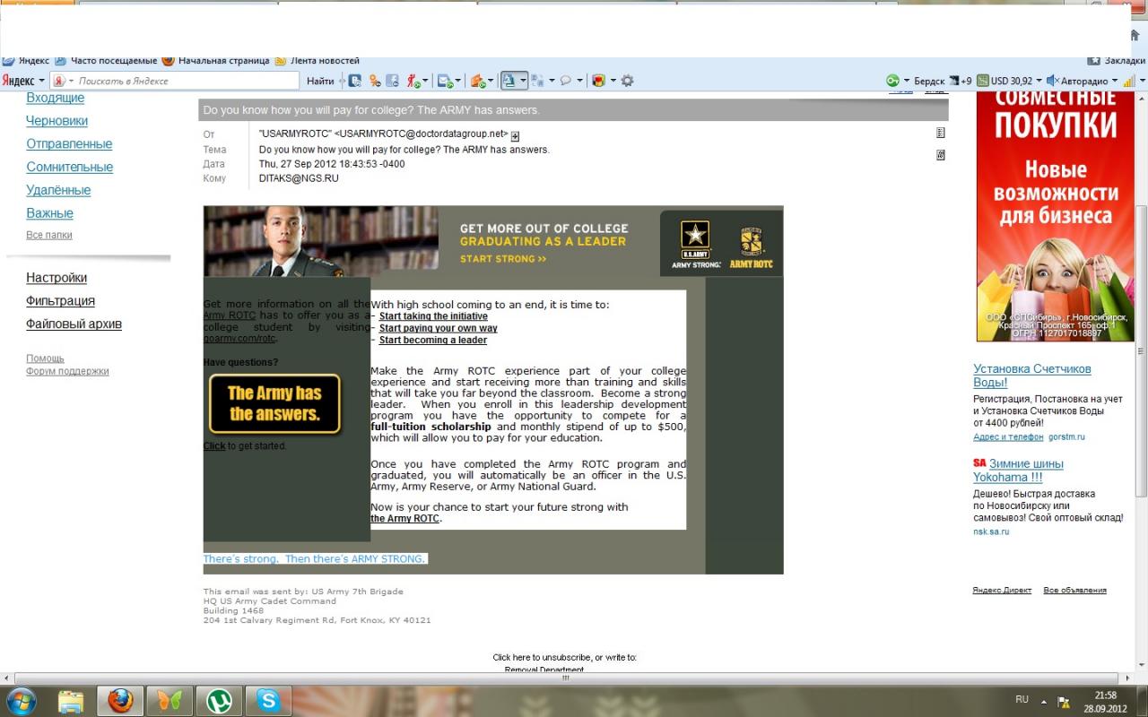 Вы знаете, как вы будете олачивать вашу учёбу в колледже? В Армии есть ответы. Короче, идите служить, и каждый месяц будет стипендия 500 баксов на обучение.