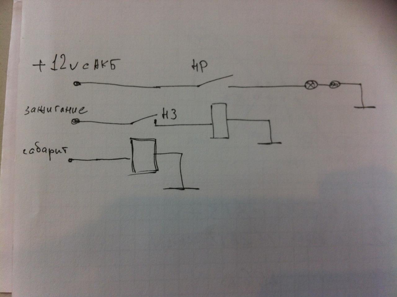 нужна схемка самостоятельного изготовления и подключения Дневных Ходовых Огней. Причем, что-бы они загорались при включении зажигания, а гасли при включении габаритных огней.