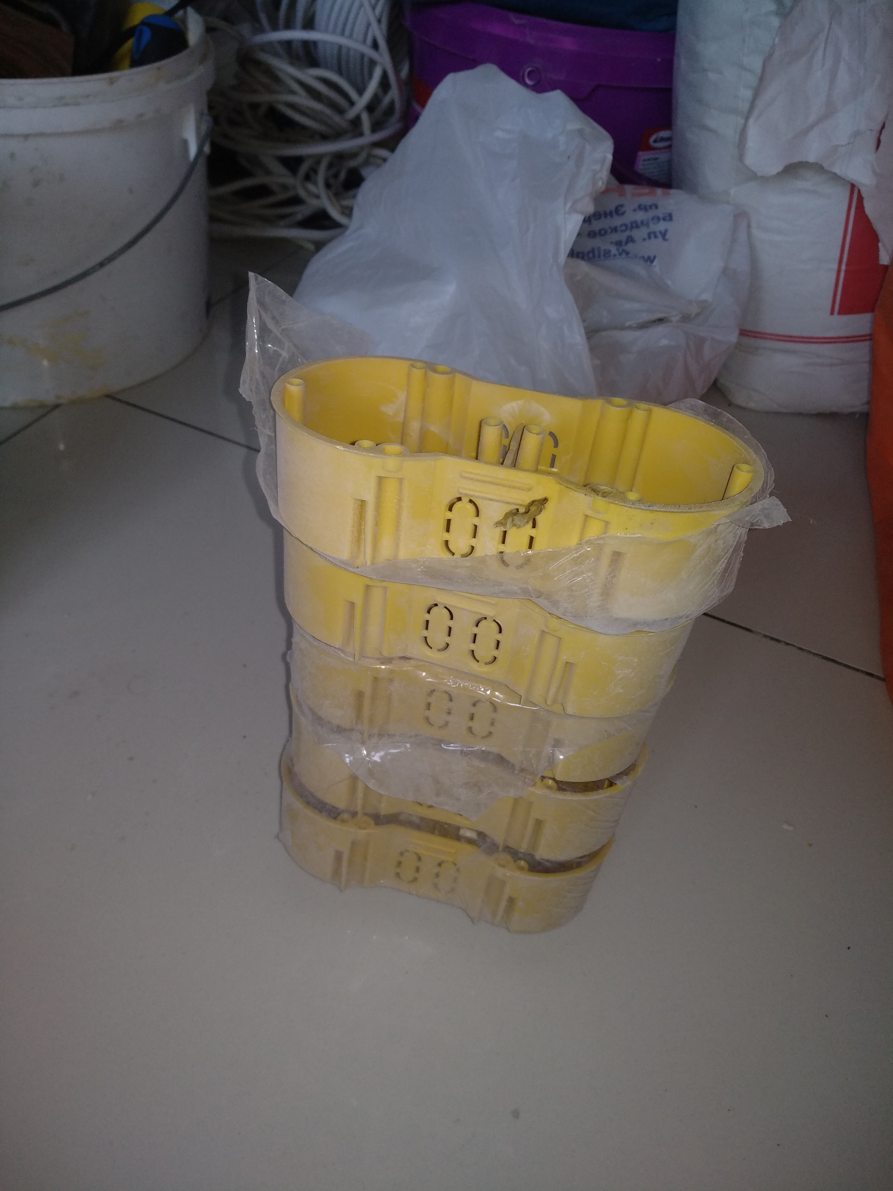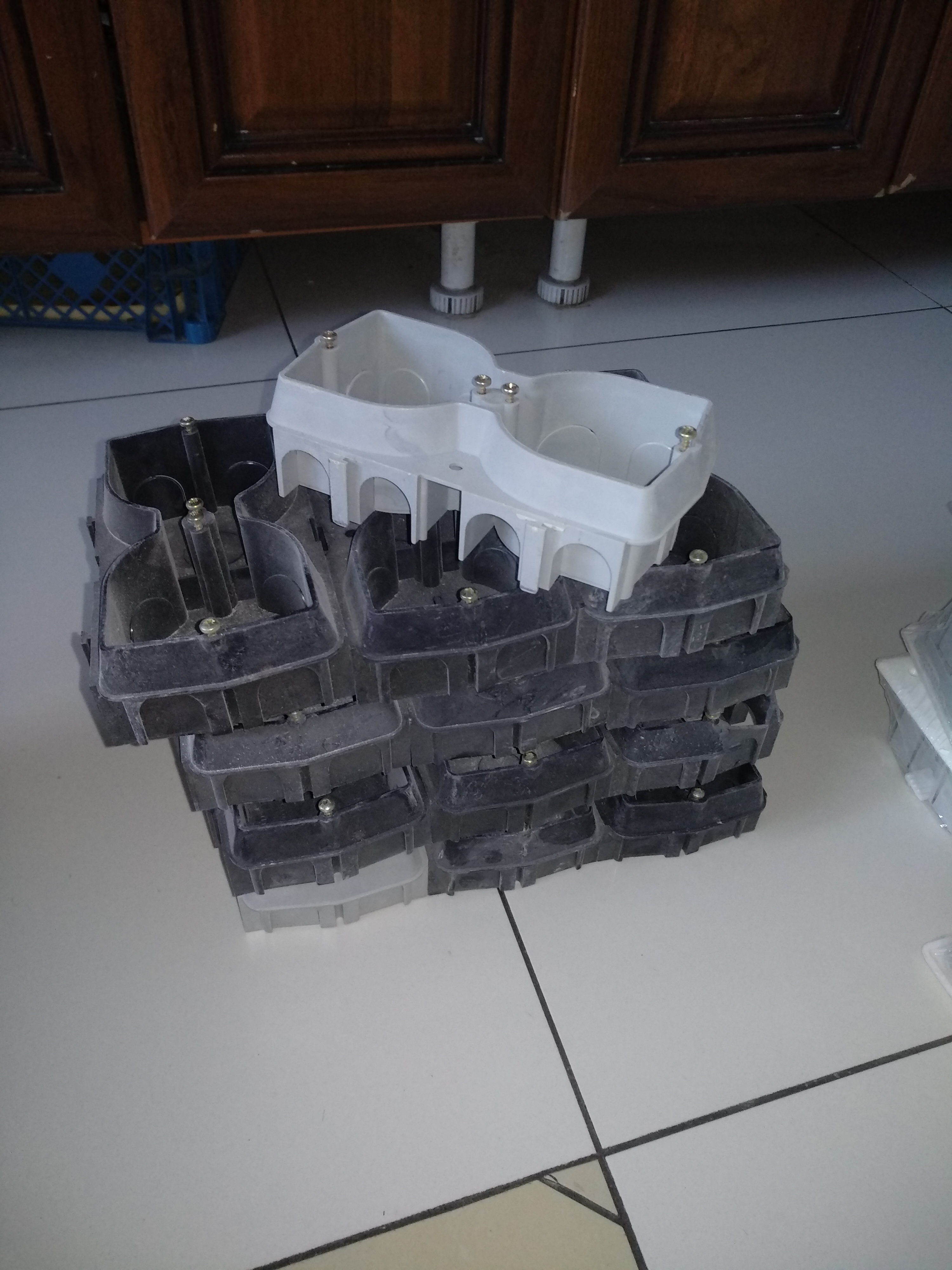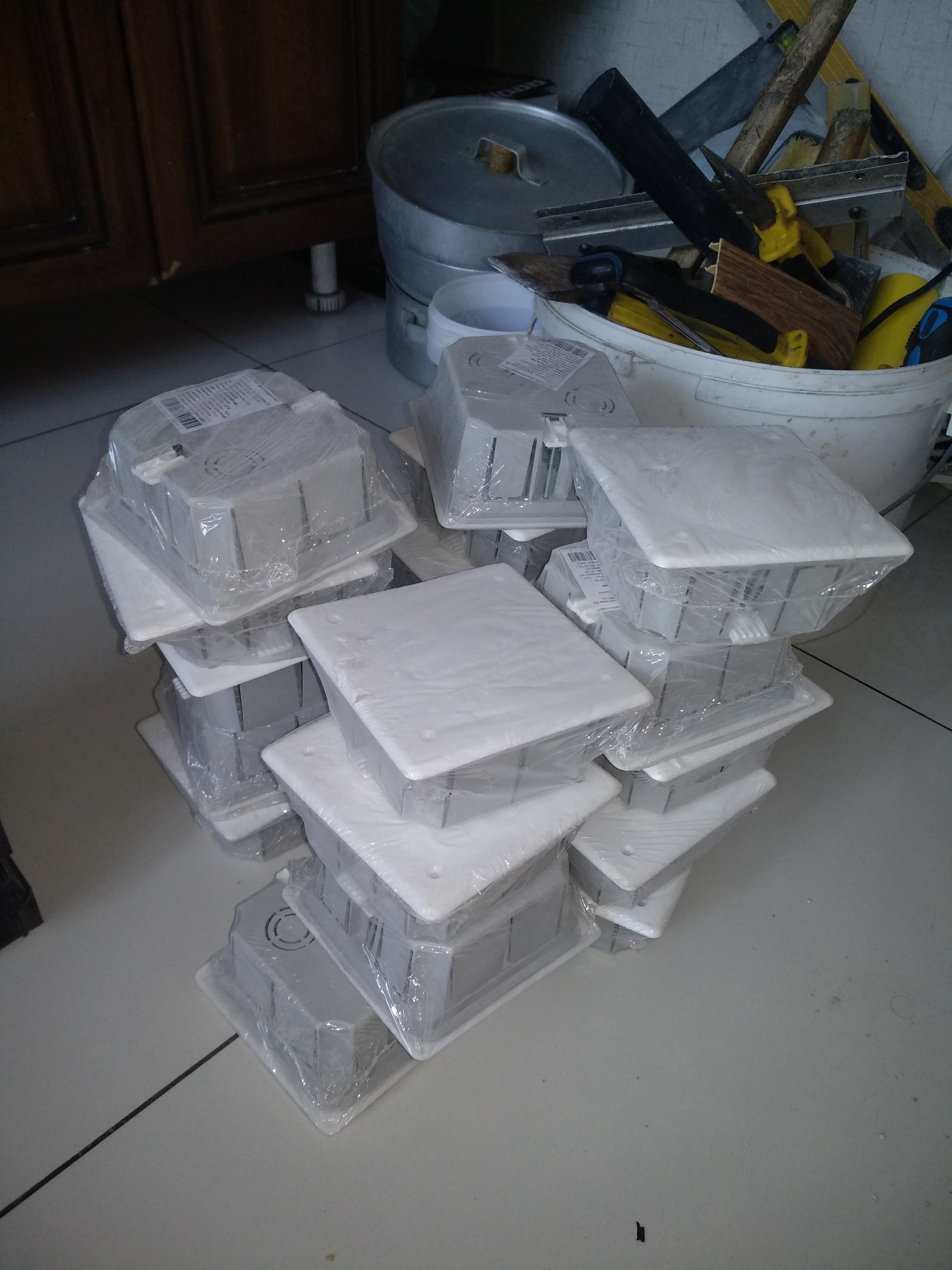 Подрозетники двух видов и распредкоробки.