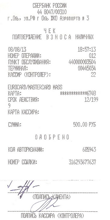 ECMC6748: 02.08.13 13:49 операция зачисления на сумму 500.00 руб. выполнена успешно. Доступно: 2900.01 руб.