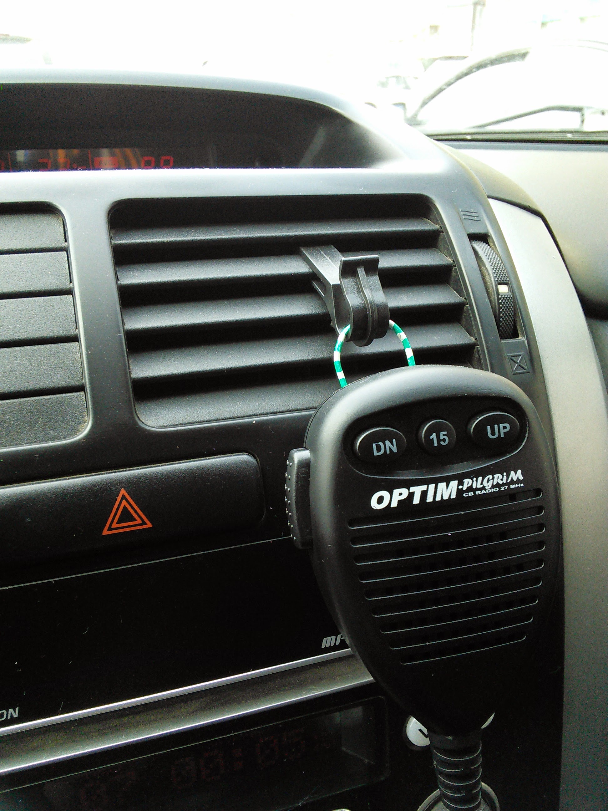 У меня штатный держатель из комплекта рации притянут тремя пластиковыми хомутами к решётке обдува посреди панели. Правда, хомуты блокируют направление обдува в фиксированном положении. Ну и ладно, зато тангента под рукой. Полезно немного отогнуть скобу держателя, чтобы усилие при установке и снятии не было слишком большим.