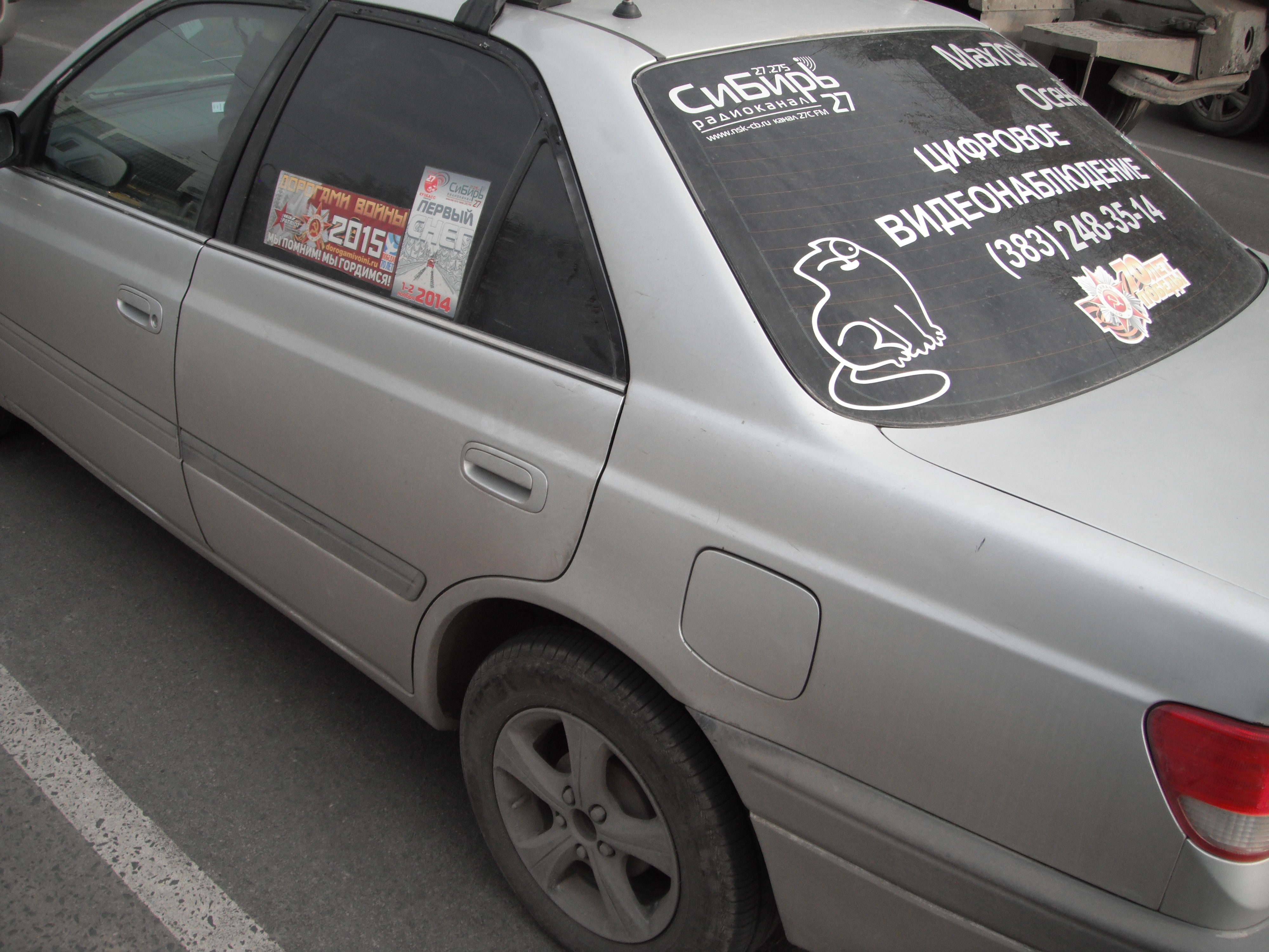 Флажок на антене "РК Сибирь" и желательно ",позывной".