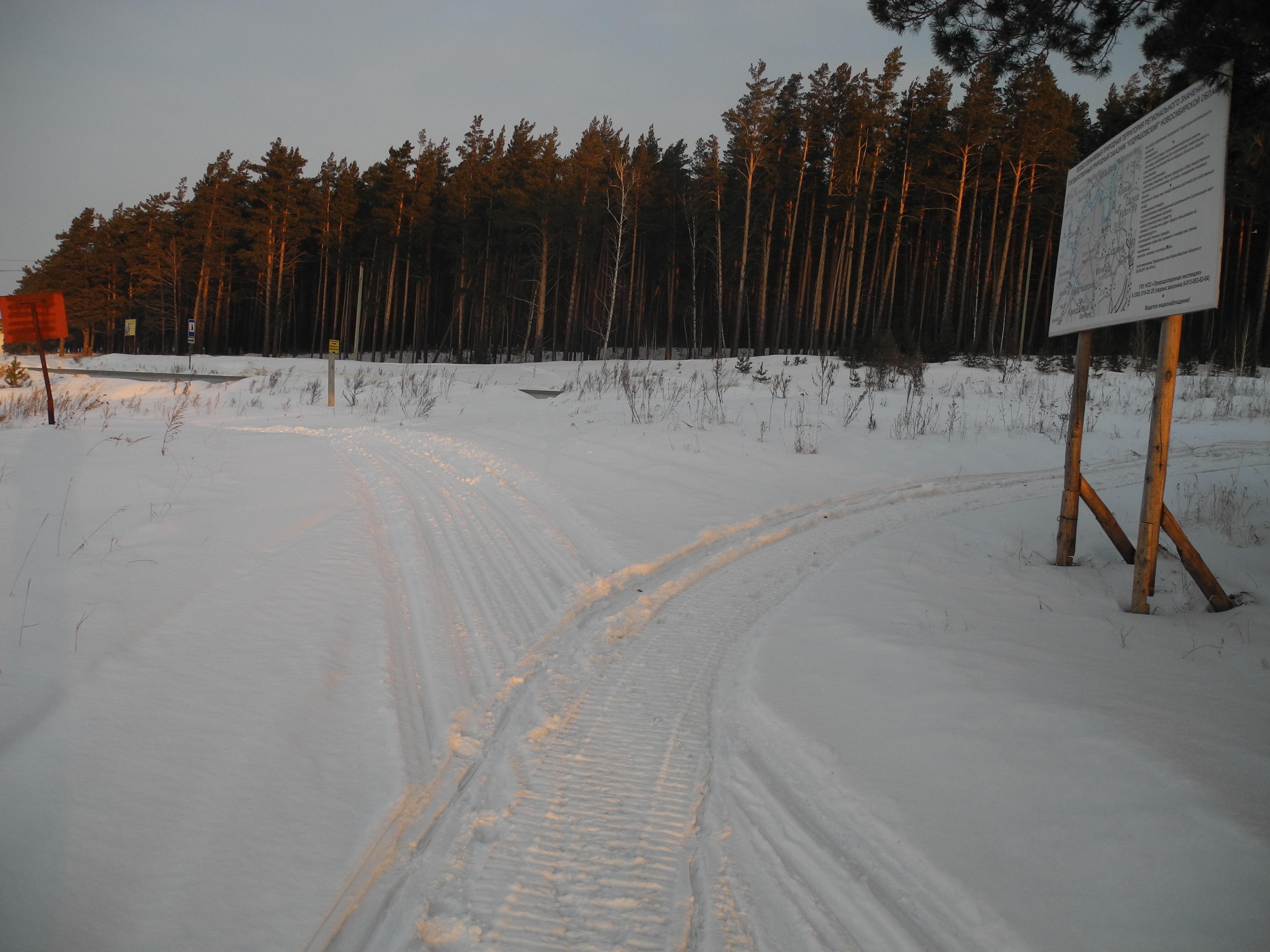Сегодня утром патрулировали с Ревизором и Пилигримом. Подозрительных машин не видели. Видели свежие следы снегохода прямо возле плакатов заказника напротив стоянки дальнобоев. Следы начинались от обочины дороги и уходили в разных направлениях, вдоль кромки леса и в соседнюю местность с кустарником.