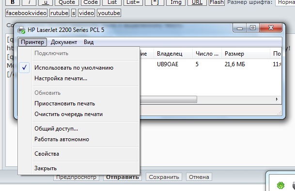 Жми "ПРИНТЕР" Смотри где есть (стоят) галочки