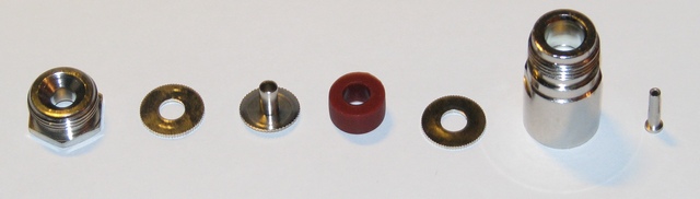 И на фото и в жизни. Самаой маленькой (фторопластовой?), которая появляется на рис.7 в файле. Рискну собрать без нее. А вот центральный контакт - обжим или пайка?