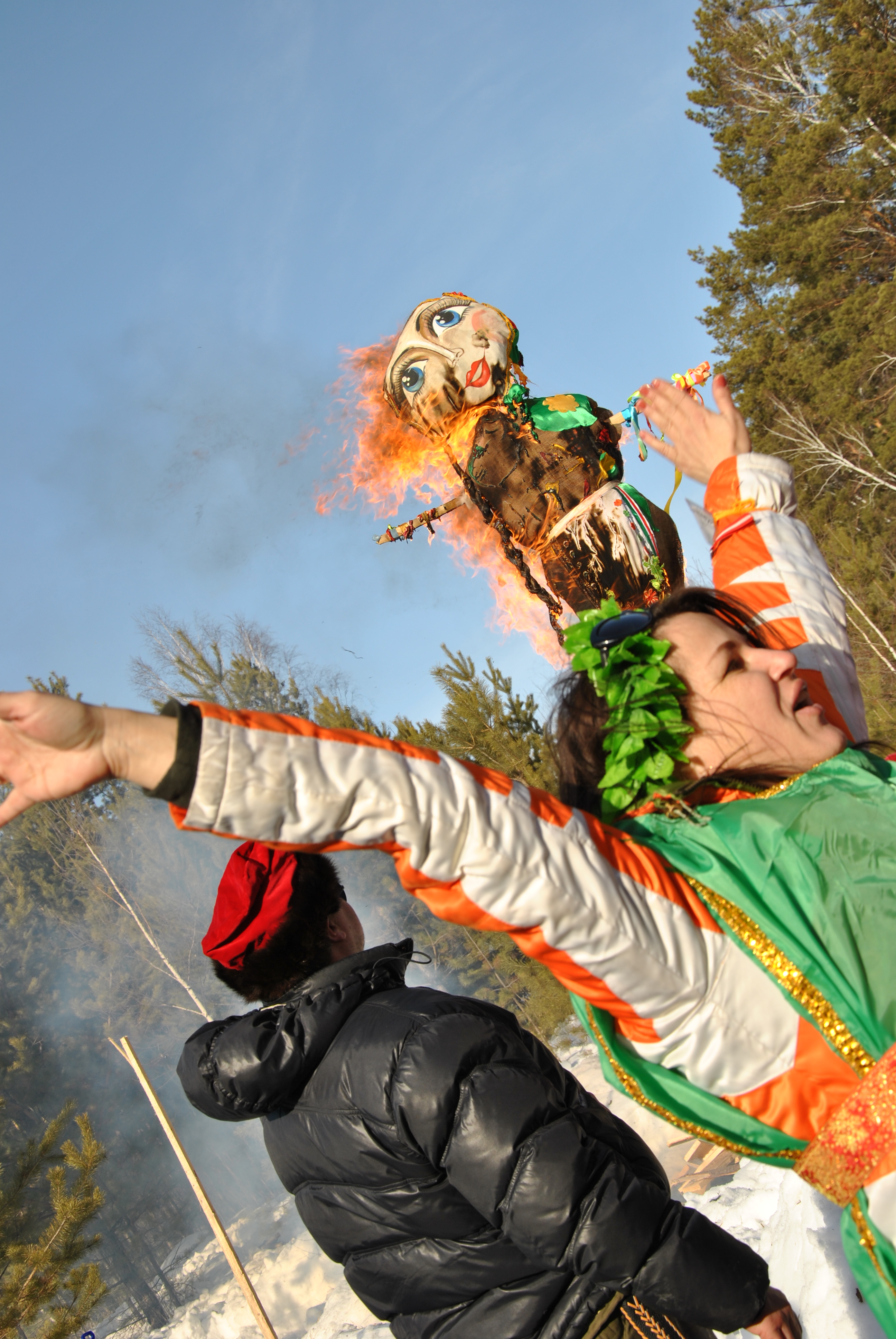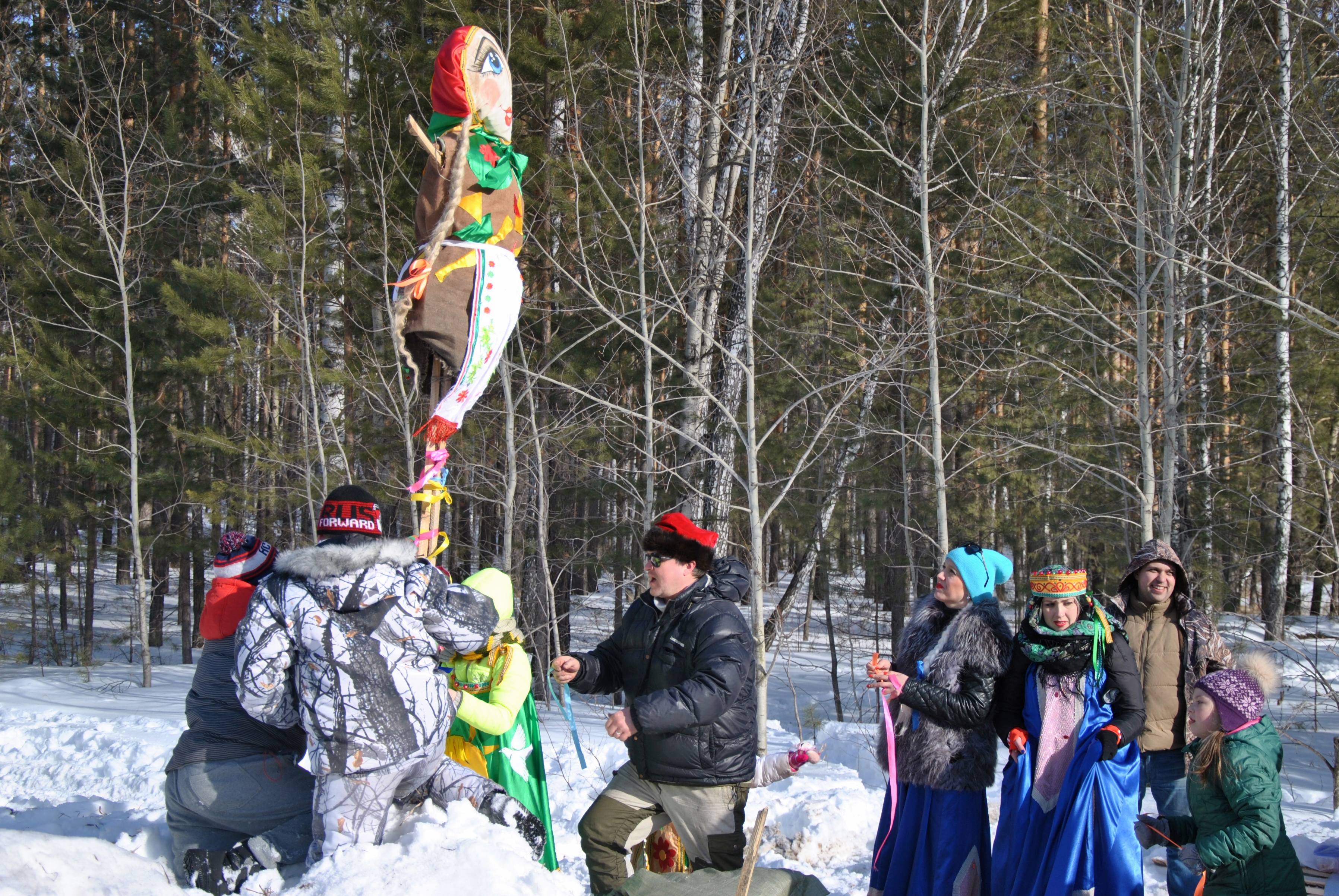 Берем с собой детишек собачек и всех-всех-всех! Провожаем Зиму,Веселимся, жжём чучело, едим блины, Едим мясо и разное другое жаренное на огне, варим КРЕЩЕНСКИЕ ПЕЛЬМЕШКИ, прыгаем через костер. Даём зиме коленом под зад. Хулиганим. Дурачимся!