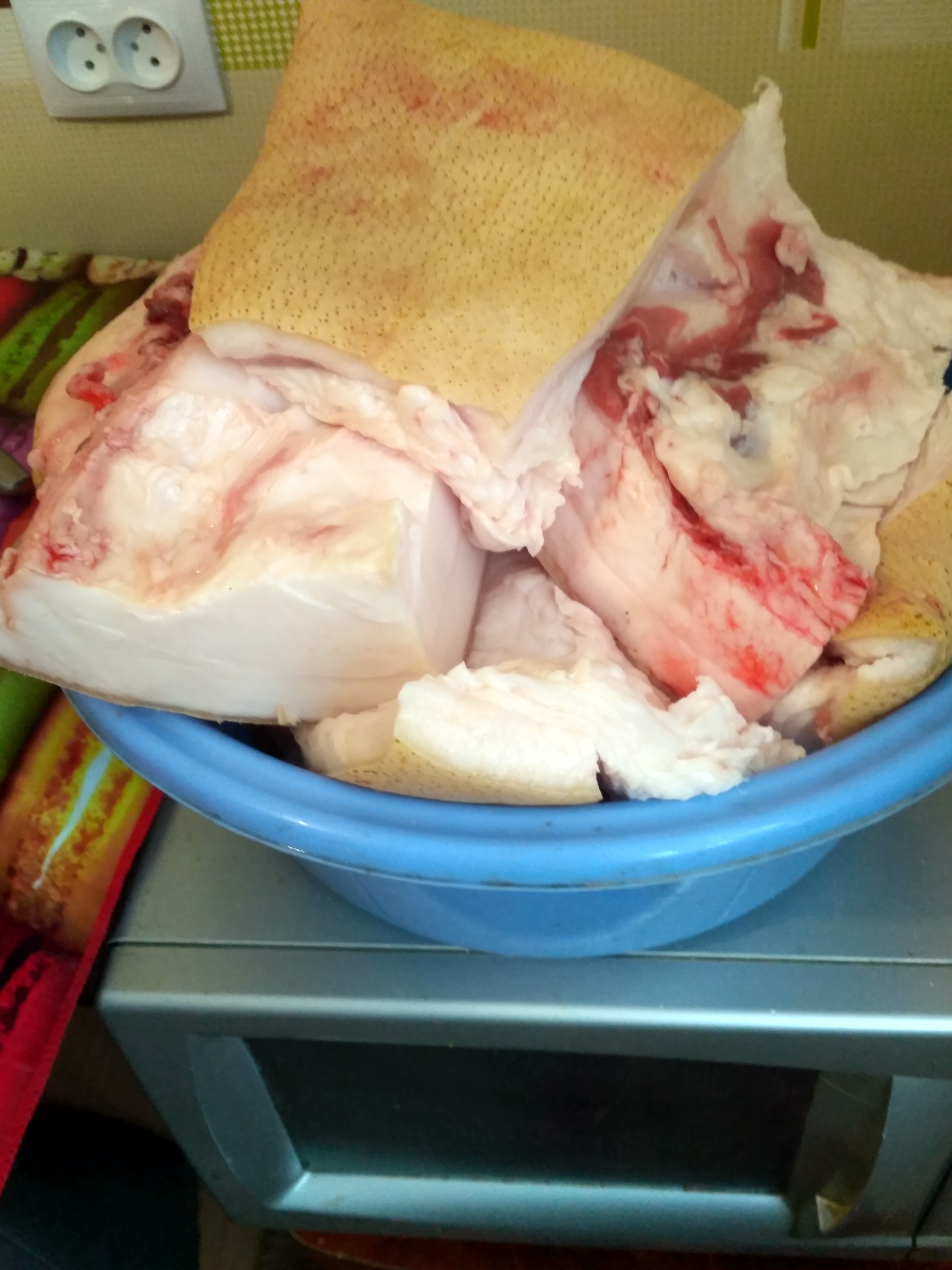 Отдам свежее свиное сало. 14 кг. Сейчас вот обрезали, будет в замороженном виде. Может надо кому-то? На шкварки, или топить.